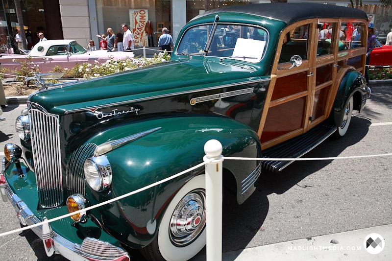 June 21, 2009, Bevery Hills, CA – This year we decided to check out the annual Concours D’Elegance classic car show held in the heart of Rodeo Drive. What better way to realize how insignificant your net worth is than to mingle with the opulent and their rare hundred thousand dollar cars! All kidding aside, it was a breath of fresh air to be transported back to a time when cars embodied more than just means of transportation. Being able to see over seven decades worth of cars was very inspiring, and seeing all those old Packards, Alfa Romeos, Shelbys, Pegasos, and of course good old Detroit almost made me wish I was born at an earlier time. Included in the mix were also a few modern cars, including a Porsche gallery, the Tesla Roadster, and the Alfa Romeo 8C Competizione.